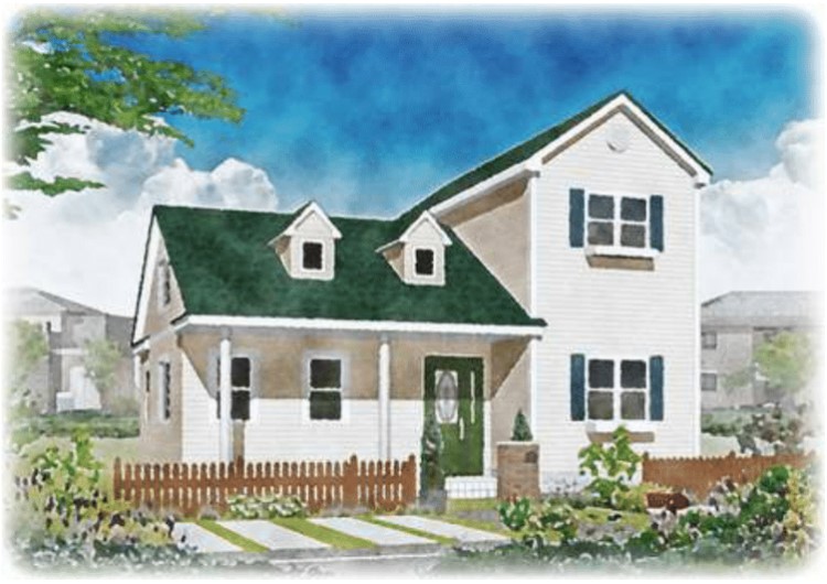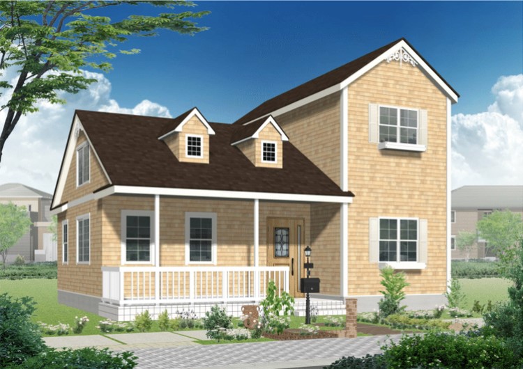 17~18世紀のアメリカ東海岸を彷彿させる住宅スタイル。 明るい色調の板柄を全面に使ったり、一部レンガ柄を用いたり、全面レンガ柄にしたり様々ですが、共通しているのは白く塗装された破風やポーチ柱、妻飾り、窓の左右の飾り戸などです。家全体を明るく引き立てます。